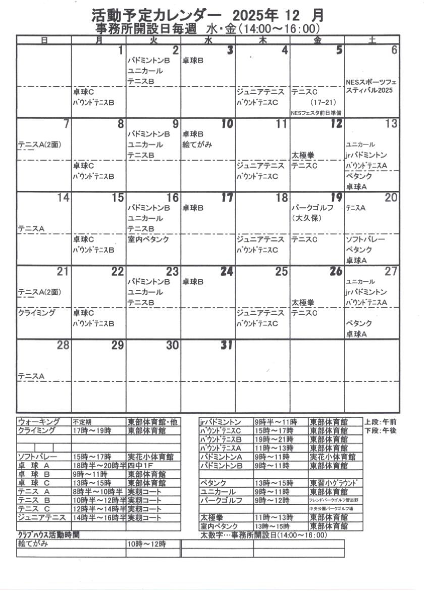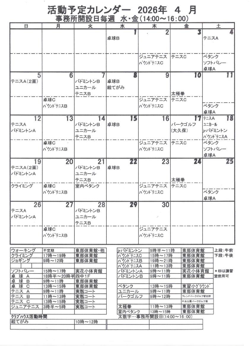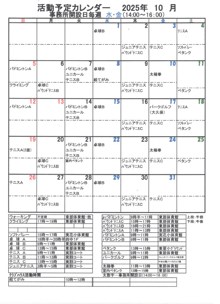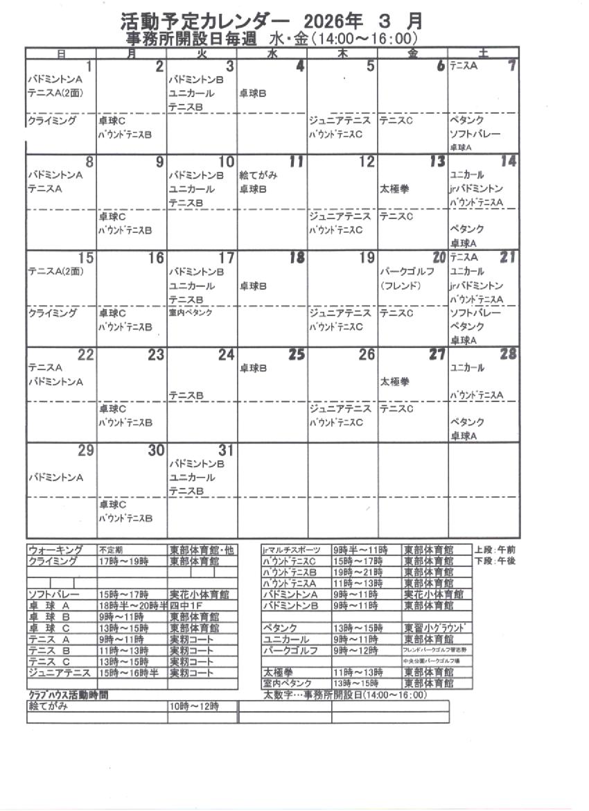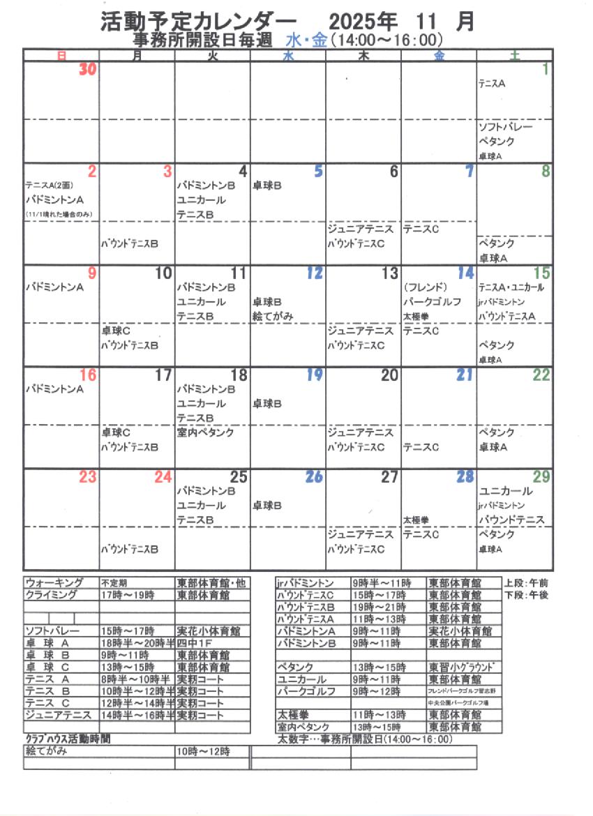 活動予定表